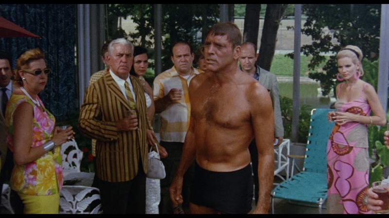 Here was a 50 year old man in a swimming suit for 95 minutes. Lancaster was in remarkable shape, no man that age is supposed to look that athletic, except Lancaster. His statuesque appearance is part of the character, a god-like man who’s American Dream life has crumbled. The film requires the character to run, dive, swim and lift women in the air. It was physically as well as emotionally demanding.