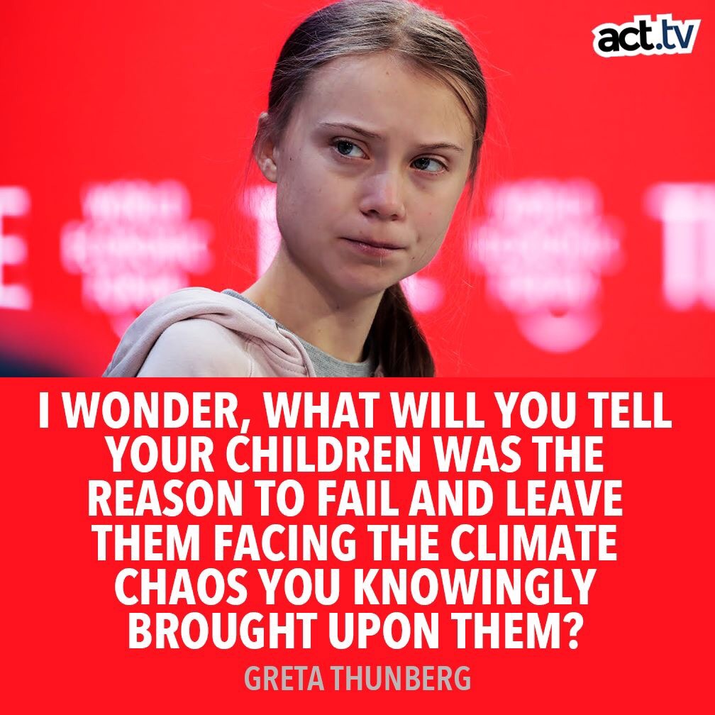 “I wonder, what will you tell your children was the reason to fail and leave them facing a climate chaos that you knowingly brought upon them? That it seemed so bad for the economy that we decided to resign the idea of securing future living conditions without even trying?
