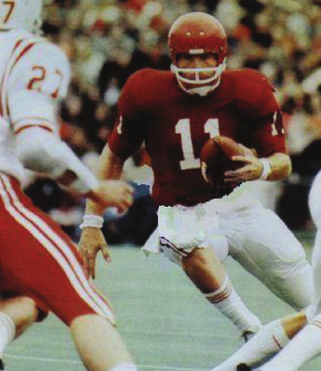 Jack Mildren was an All-American quarterback for Oklahoma and engineered the wishbone offense where the team averaged more than 400 yards per game on the ground. Mildren was drafted by the Baltimore Colts as a defensive back where he played for two years, then a final year for the New England Patriots.