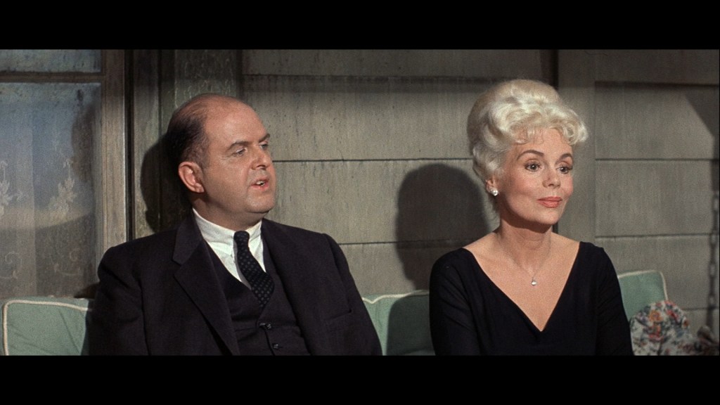 Stewart seems challenged at every turn. From the house’s water pump to his distrustful housekeeper to the man at the yacht club with a sudden interest in Mrs. Hobbs to the entire idea of a monthlong family vacation when he was hoping for a romantic vacation with just the wife. Stewart is the everyman and living the American Dream, but is entering middle age, dealing with the generation gap, daily commutes in rush hour traffic, a wife he is still interested in, kids that may move back home, and who just tries his best to make it all fit together.