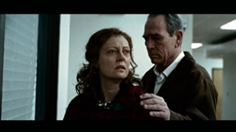 Jones turns in a heartfelt performance with a measured reaction. He conveys so much doing very little, just the right amount. A bewildered, empty expression says how unprepared he is for what faces him. He is unable to console his broken wife (Sarandon) who unleashes what he is incapable of expressing. His two sons followed him into the army, now both are dead. The distance between Deerfield and his wife is vast. There is a scene of Deerfield telling a bedtime story to Sanders’ son, where shows there is warmth and compassion inside him, even though it is throttled down.