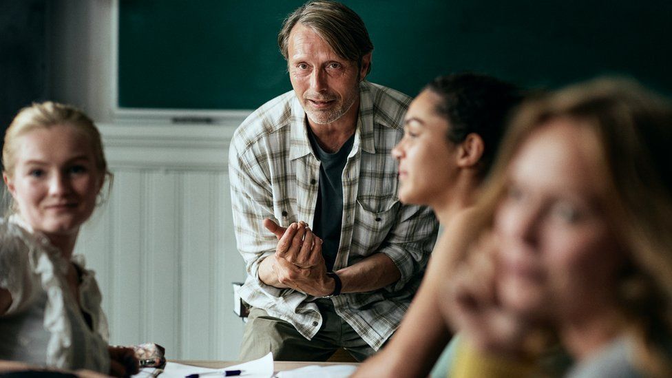 Mads Mikkelsen (Casino Royale, Rogue One: A Star Wars Story, Indiana Jones 5) plays Martin, a history teacher, is so indifferent to his students that their parents contact the school, so Martin is confronted by students and parents. He feels pressure from them, his sons who seem to have no relationship with him, and his wife Anika, who works the night shift seemingly to reduce contact with him. At a dinner to celebrate friend Nikolaj’s 40th birthday, Martin confesses to his three friends, how empty his live seems. He had dreams to get his PhD and become a researcher, but his family was young. so he put his energy there. He was known as a young man full of fire, and he and Anika seemed the example of a great relationship. Liquor flows freely during the evening, and a reluctant Martin, changes his mind and consumes a lot.