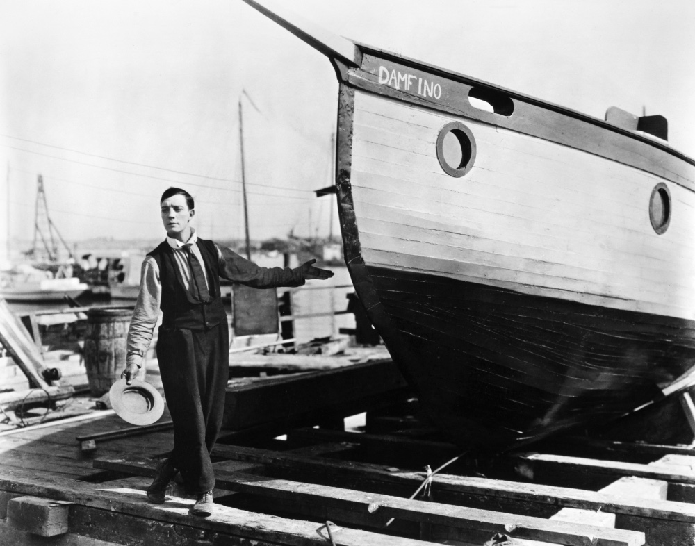 Written and directed by Keaton and Eddie Cline. The boat was constructed in his basement and was too large to fit through the door. His house crumbles as he pulls it through the door. He loses his car while launching it. Naturally, more trouble ensues during sailing.