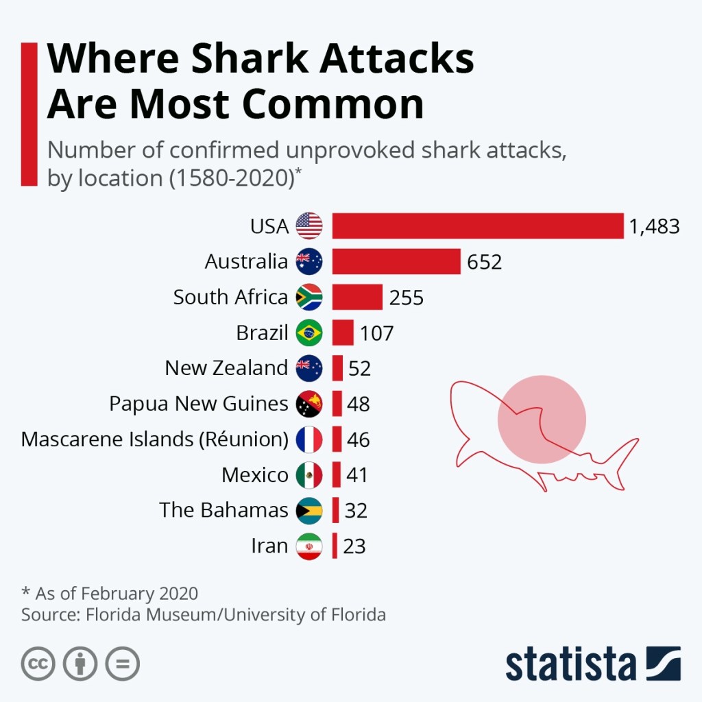 The movie Jaws did a disservice to sharks. Even author Peter Benchley later regretted popularizing and evoking the pushback against sharks after the success of his book and the film. The 2021 worldwide total of 73 confirmed unprovoked cases was in line with the most recent five-year (2016-2020) average of 72 incidents annually. For 2020, there were 57 confirmed incidents and 41 the year before. For the millions of times each year that people go into the water, 72 attacks is a very low number, yet no one wants to be one of those statistics.