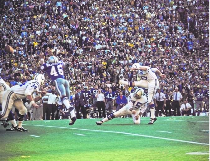 Bell’s NFL career ended shortly after that student teaching encounter. There were already a dozen or more soccer-style kickers in pro football then, mostly Europeans who ended up in America as soccer players. Hall of Fame kicker Jan Stenerud came to America on a skiing scholarship. He and Garo Yepremian faced off on the longest pro football game on Christmas Day 1971. Two soccer-style kickers.