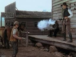 Ryker turns up the intimidation on the homesteaders, and brings in a hired killer, Jack Palance is a menacing role as Wilson. A fight is provoked with a homesteader, who Wilson guns down.