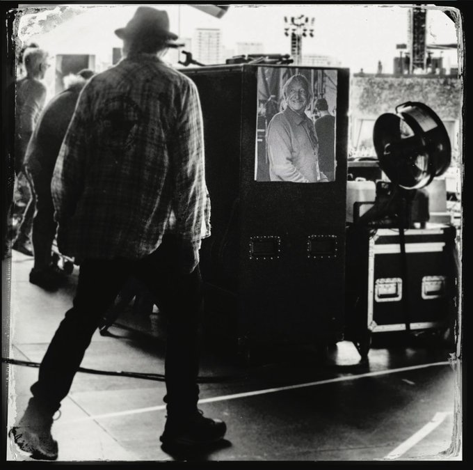 Young wrote that Roberts always went on tour and stood off by the side. In his honor, Young had a poster of Roberts placed in his usual location at each concert.