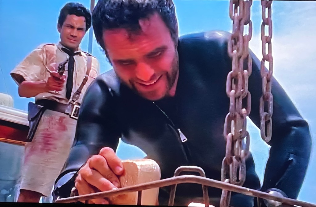 The supporting cast is interesting. Barry Sullivan, Silvia Pinal and Arthur Kennedy. They were all slumming. Kennedy had an award-winning career, but you wouldn’t know it here. He plays a drunkard who happens to be a doctor. Sullivan had a nice film and television career as a supporting actor. He plays a professor who is researching a wreck, but really needs help to retrieve gold from the wreck. Pinal was a leading Mexican actress, who also had a lot of success in Europe. Here, she plays mysterious and sexy, and is the brains of the gold recovery.