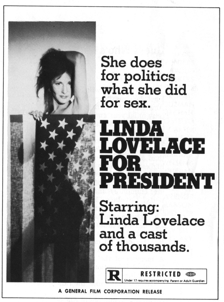 To be fair, Linda Lovelace for President was no sex-romp, it was part of her attempt to cross over to mainstream entertainment. The film was released in various versions from PG to X, but even the X was softcore and would hardly bat an eye today. There was no real sex being performed, just a scene of simulated fornication and a bit of nudity – tame stuff for the Deep Throat actress, but certainly more than enough for the religious right to perceive a communist threat to the American way of life.