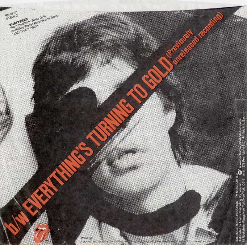 And finally, another Rolling Stones B-side, “Everything Is Turning to Gold” which has the rarity of being co-written by Ronnie Wood. It’s the flip side of “Shattered,” and is an interesting song.