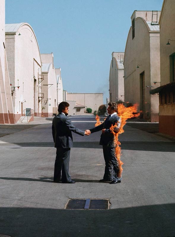 For Wish You Were Here, it was decided to use a man on fire for the cover, as it exemplified the theme of being used up by big companies, specifically the recording industry. A stuntman agreed to be set afire (multiple times according to Po). The album was then shipped with a black wrapper over the cover.