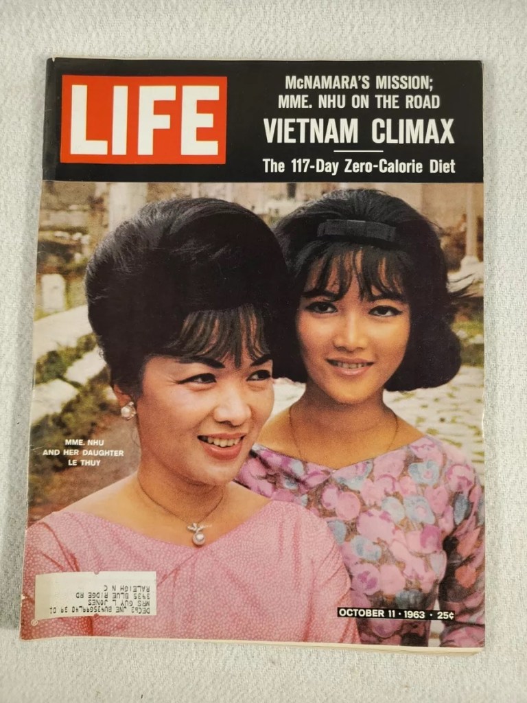 In October 1963, Diem and his brother had organized a false coup against them, hoping it would court favor and reduce the pressure on them. Ironically, a real coup was underway by Diem’s generals. Madame Nhu and her oldest daughter happened to be away on an official visit to the U.S., when word reached them that the Nhu brothers had been arrested and killed. American complicity was charged, though not admitted at the time. Clearly, the U.S. wanted a regime change since the Diem administration, including Madame Nhu, were doing serious damage to South Vietnam’s stability and the war effort. The bodies of Diem and Nhu were horridly brutalized and paraded, a sign of the rage felt toward them.