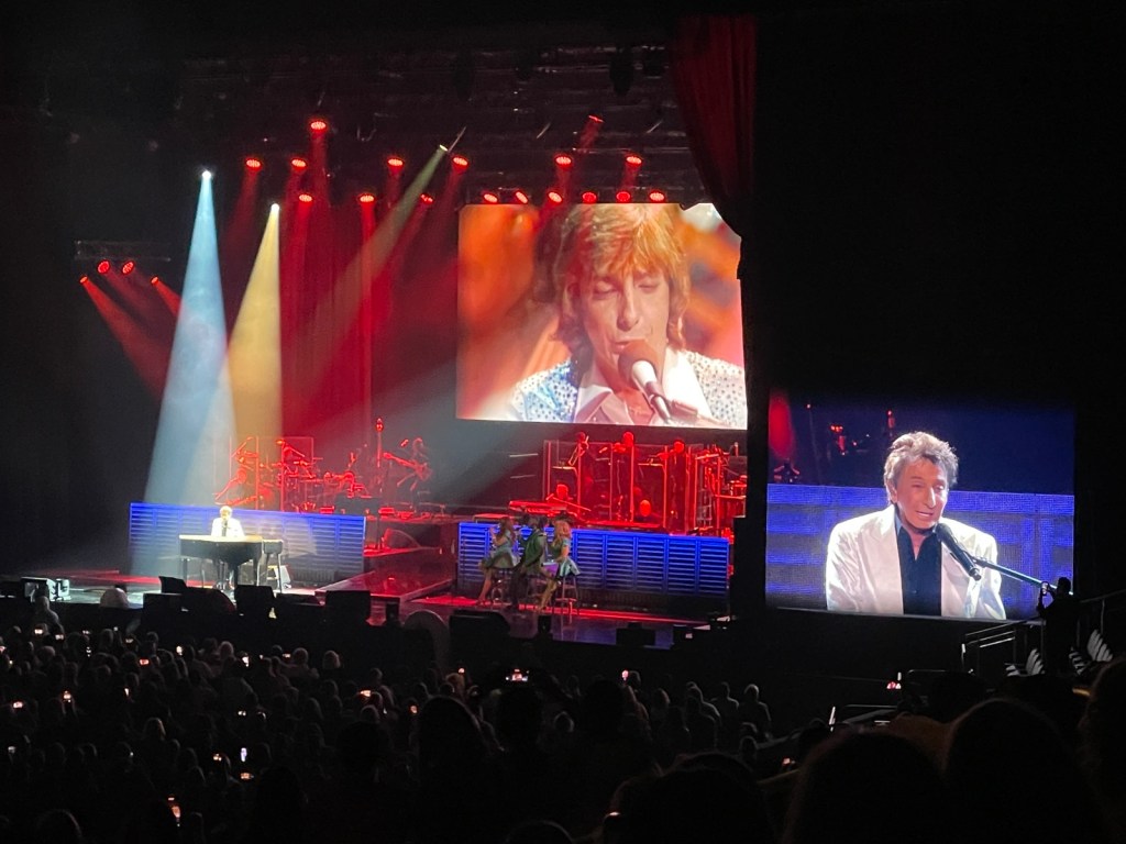 Manilow was splendid in his attire, he changed jackets a few times as he modeled the vibe of the songs. His backup singers also matched his look, and there was nothing wrong with stylizing the performance to the music. Color was very much a part of the production design, with the lighting, clothes, and the video screens, but it was not overpowering.