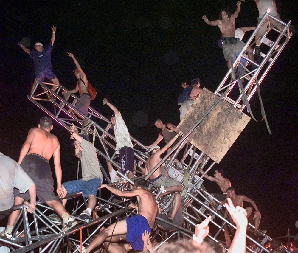 The other factor worth noting is the change in the audience, which was directly tied to some of the performers signed to play the event. The music of 1999 wasn’t your grandfather’s rock and roll, and alcohol and drugs didn’t mellow many in the crowd – it served to enrage them. Peace and brotherhood was replaced by anger and destruction. When MTV pulled their people out due to the unsafe environment, that was the sign that the shithouse was going up in flames, as the late Jim Morrison for-warned. The third episode is pretty frightening – a huge crowd, inadequate security, agitation growing, no easy way out. A sense of doom.