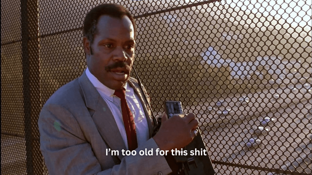 There’s a lot of shit I don’t miss dealing with. But you know what, other shit has replaced the old shit. It’s life. At least you can say that you’re too old. And it looks like Roger Murtaugh will be back in Lethal Weapon 5 to say it one more time.
