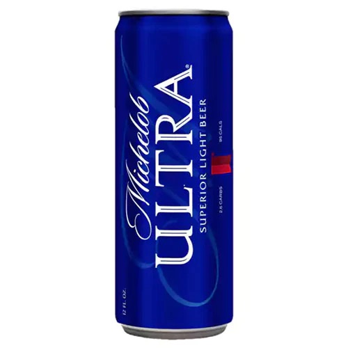 Michelob Ultra Light, in the blue can, is an organic light beer, often branded with blue and gold, offering 85 calories and 2.5g of carbs. It contains no artificial colors or flavors and is made with organic grains. The popularity of the beer is certainly aligned with the low carbs. The thin can must be a subliminal message.
